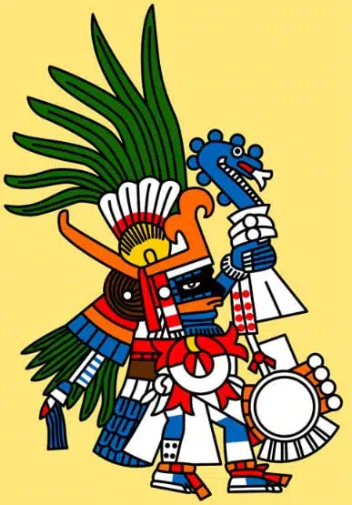 - Huitzilopochtli: Dios del sol y la guerra, patrono de la ciudad de Tenochtitlan.